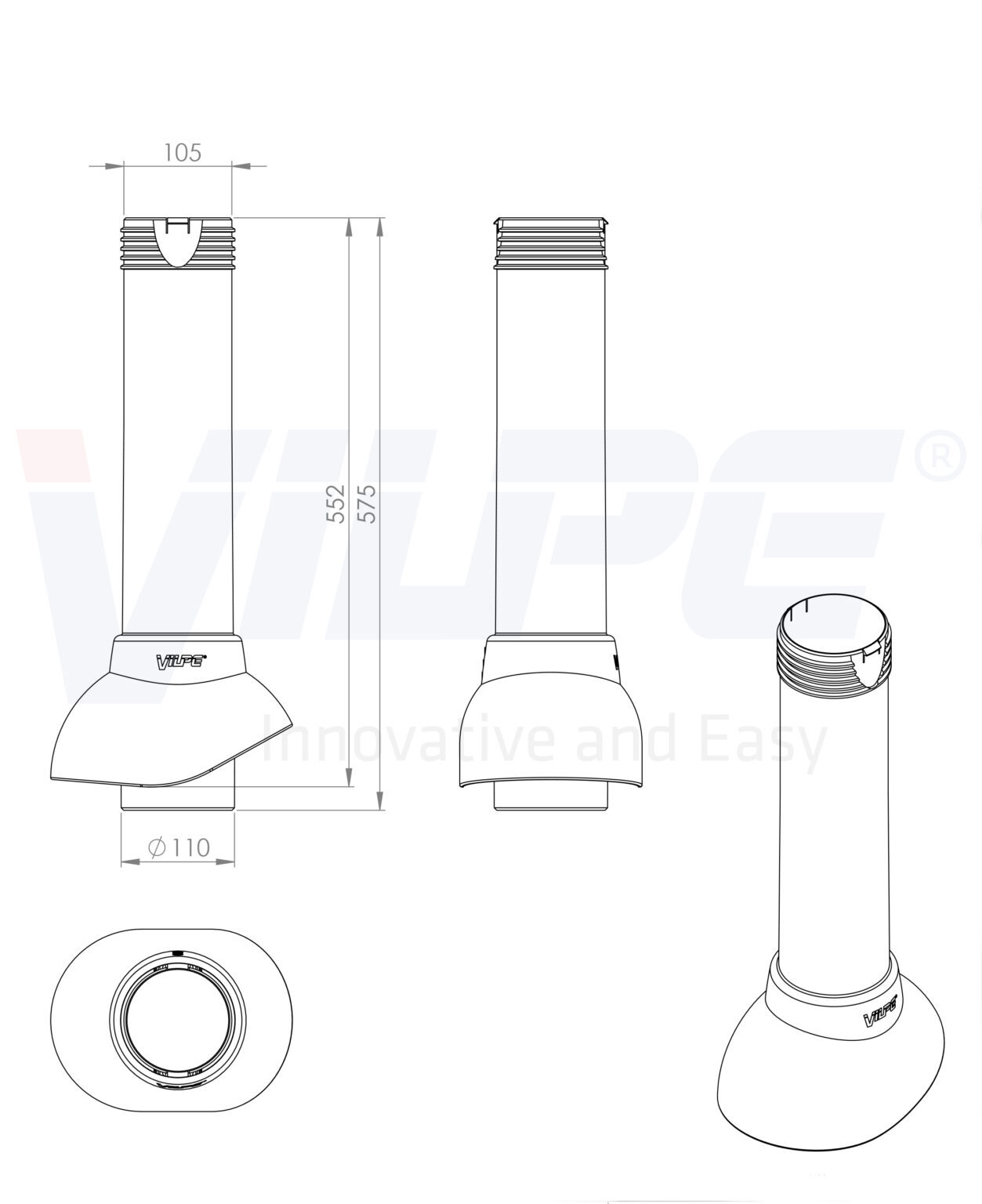 Неизолированные выходы рекомендуются для вентиляции канализационных стояков в регионах с мягким климатом. В регионах с безморозными зимами канализационный выход можно оснащать колпаком-дефлектором. Вентиляционный выход соединяется с канализационным стояком с помощью ВИЛПЕ гофрированной трубы.