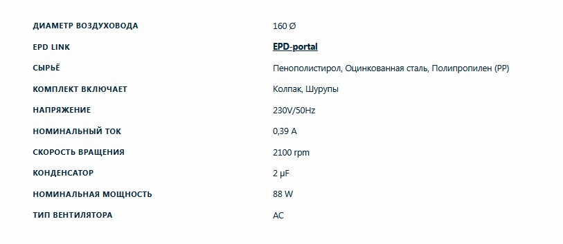 Воздушный поток 0 -800 м3/ч. Диаметр воздуховода 160 мм. Внешний диаметр 225 мм. Высота 500 мм. Тип двигателя AC.