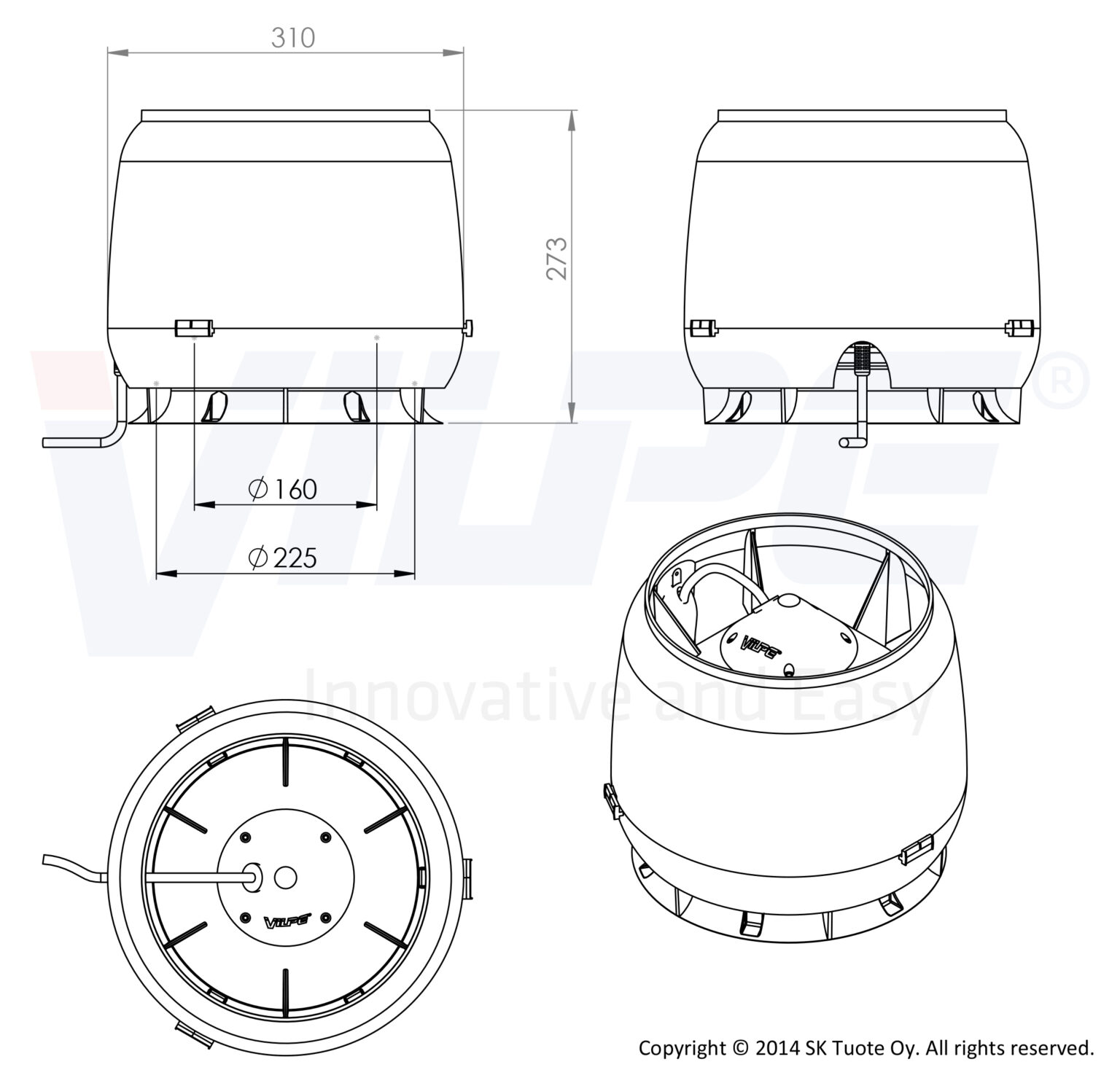 Воздушный поток 0 -800 м3/ч. Диаметр воздуховода 160 мм. Тип двигателя AC.