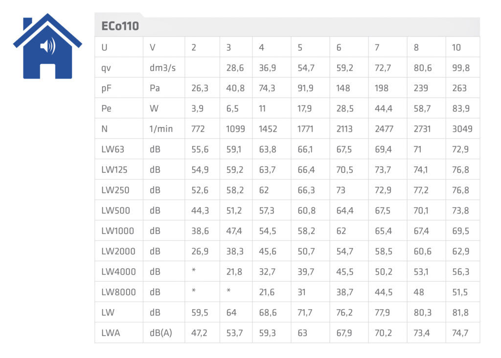 Комплект: ECo110S вентилятор, основание 250 х 250 мм с соединительным патрубком, 2 монтажные инструкции и набор крепежа.