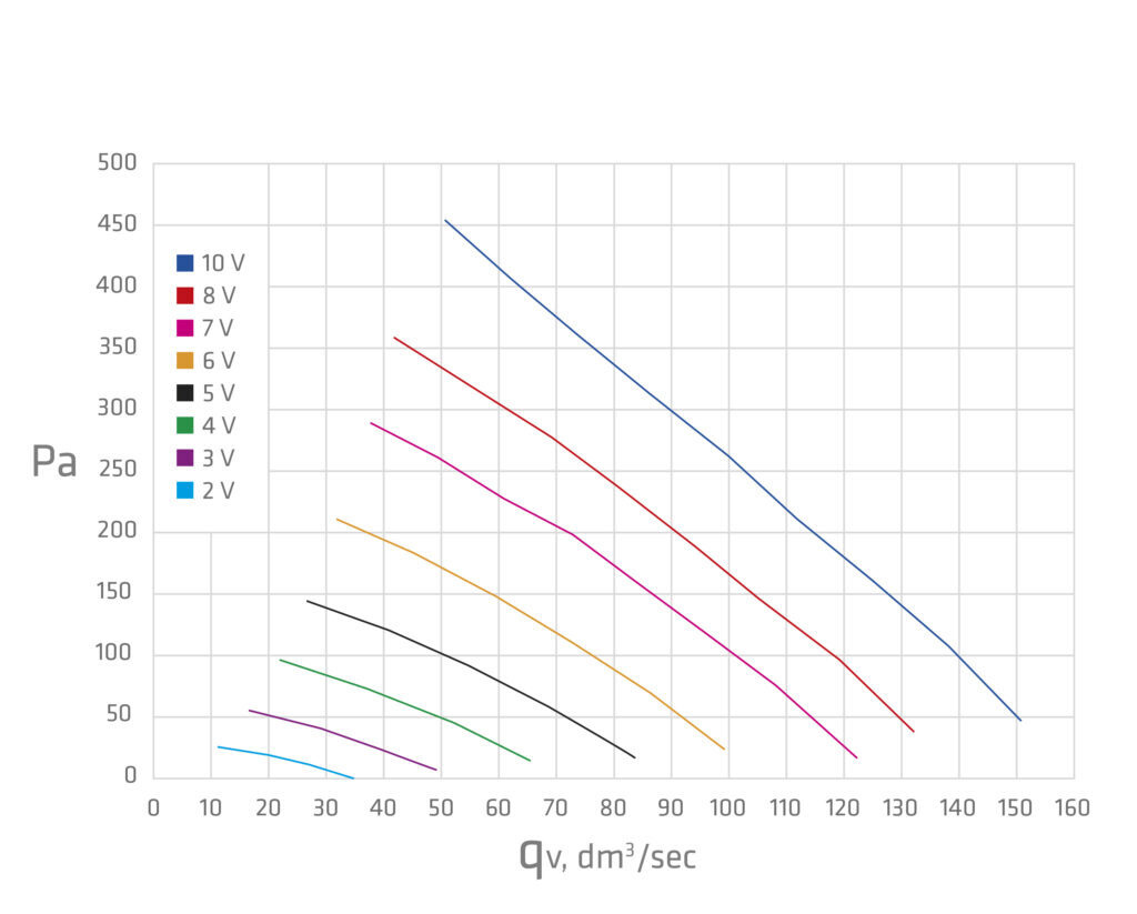 0 -600 м3/ч (при напряжении 10V). Тип двигателя DC. Диаметр воздуховода 160 мм.