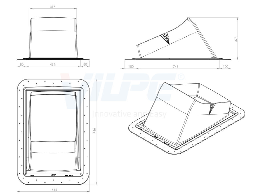 PIIPPU MODULAR проходной элемент для вывода на битумную кровлю квадратных в сечении дымовых труб размером 320 x 320…370 x 370 мм. Устанавливается при монтаже кровли.