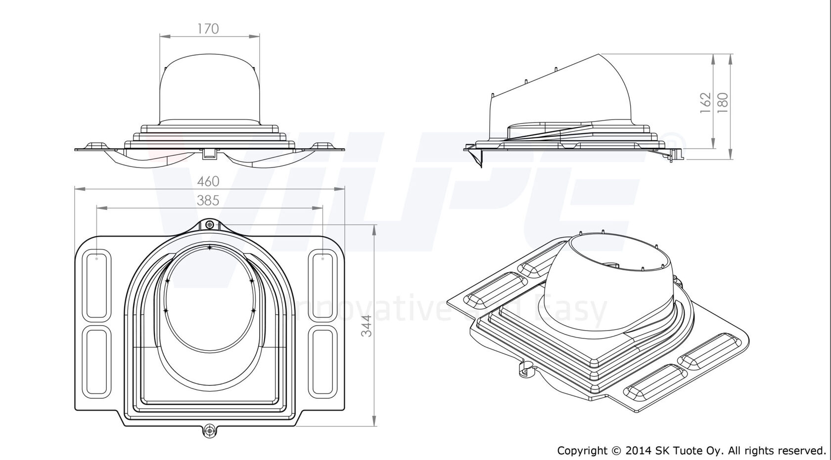 ПЕЛТИ (PELTI) проходной элемент для монтажа на металлочерепице с высотой профиля до 38 мм труб и вентиляторов диаметром 110 –160 мм и антенного ворота. Герметичность монтажа обеспечивается резиновым уплотнителем, легко формуемым по профилю металлочерепицы благодаря слою алюминия на фланце уплотнителя. Не применим для металлочерепицы с трапециевидным профилем выше 38 мм.