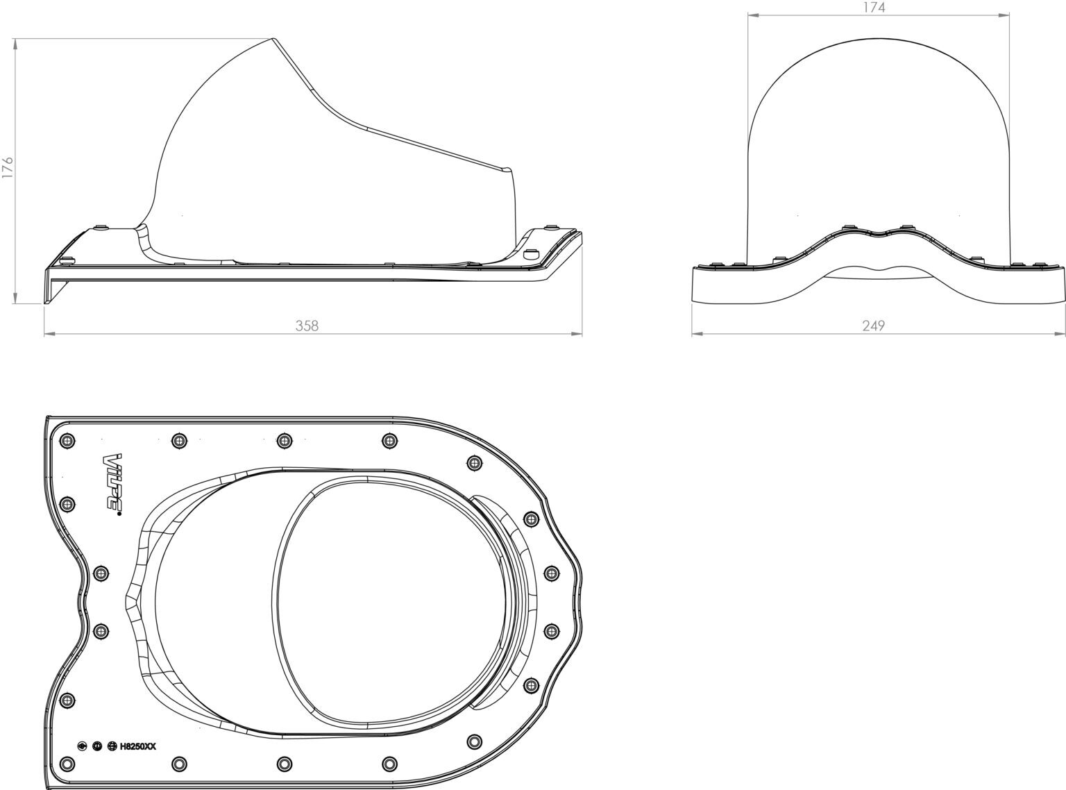 НЕРА 2К (NERA 2K) проходной элемент для монтажа на металлической кровле типа Finnera (ширина волны 190 мм, длина профиля 330 мм, высота профиля 52 мм) труб и вентиляторов диаметром 110 –160 мм и антенного ворота.