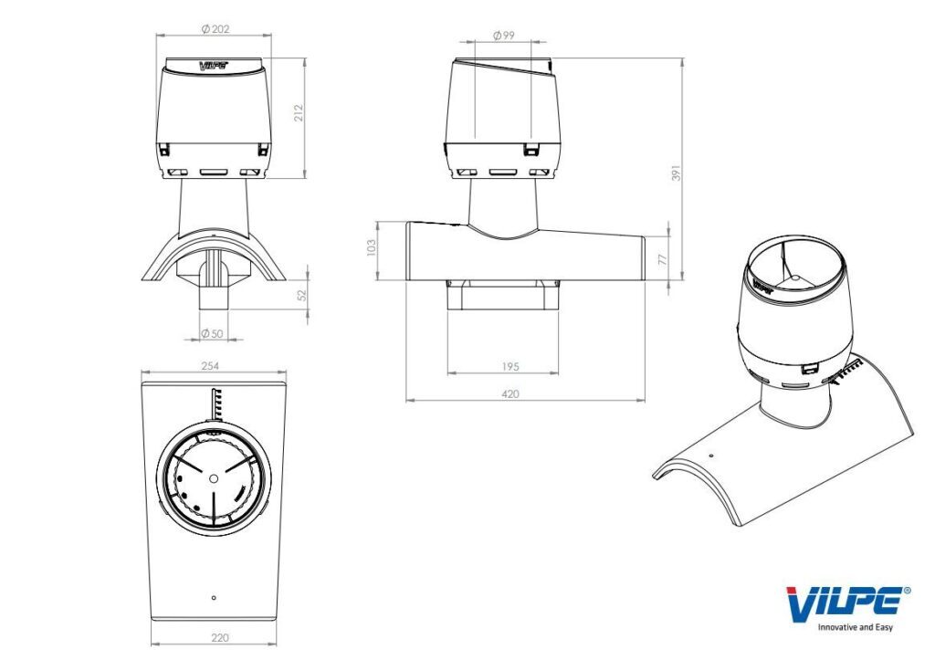 Комплект: дефлектор с колпаком, переходник, монтажная инструкция и набор крепежа (саморезы 1х100/105 мм в цвет +1х50 мм оцинкованный +2х25 мм оцинкованные +насадка).