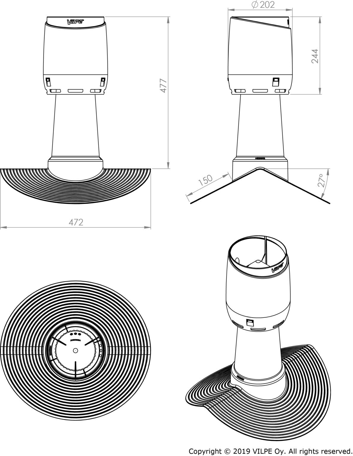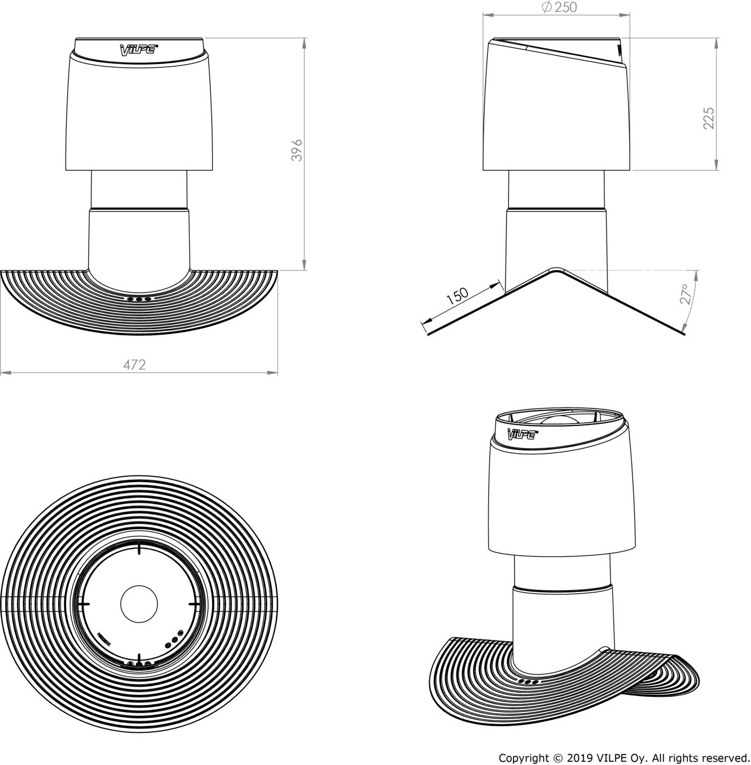 Дефлектор коньковый для вентиляции скатных битумных кровель с углом уклона 27° и чердачных помещений.