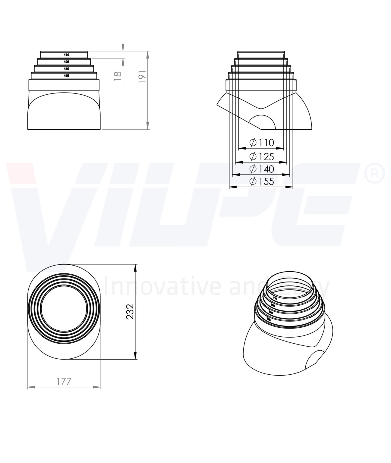 Ворот трубы 110 -155 VILPE просто и герметично выводит на кровлю трубу диаметром 110 -155 мм. Гибкий уплотнитель из EPDM -резины допускает смещения трубы, не нарушая герметичности кровельной проходки.
