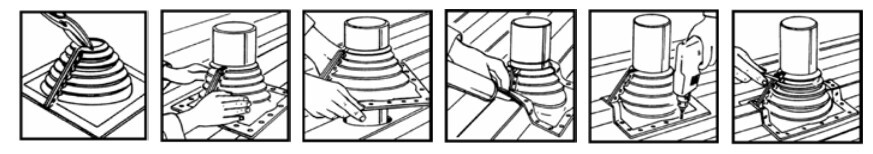 РЕТРОФИТ (RETROFIT) разъемный уплотнитель для герметичной проводки труб, опор рекламных щитов, флагштоков, кабелей и т.д. через металлическую кровлю. Гибкий уплотнитель из ЭПДМ (EPDM) -резины с фланцем, имеющим алюминиевое покрытие, допускает тепловые и механические колебания, герметизируя отверстие в кровле.