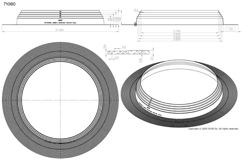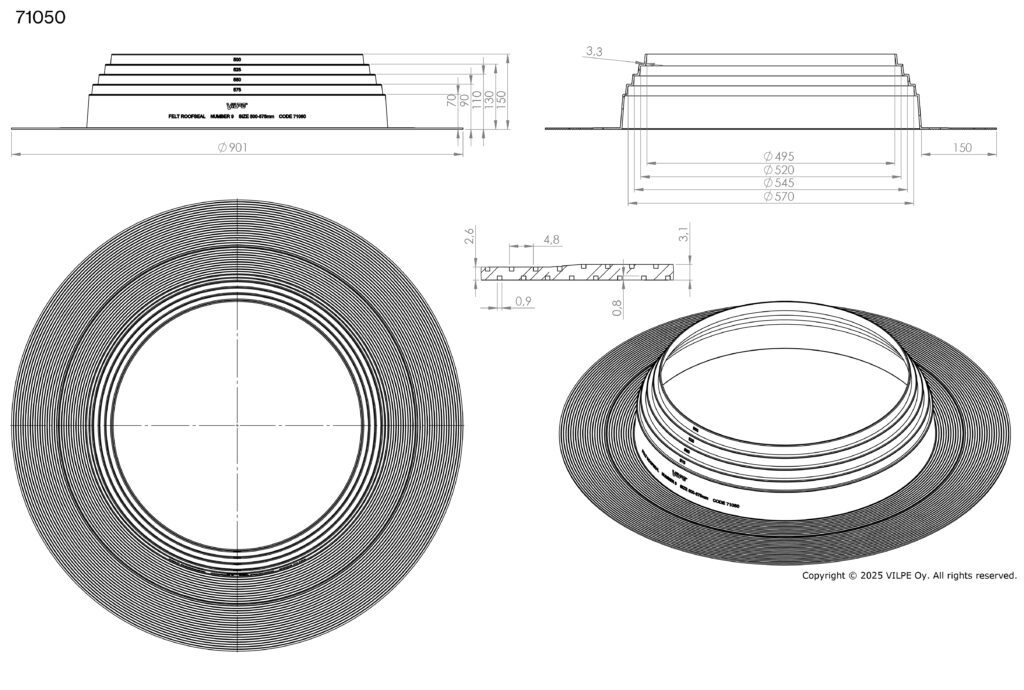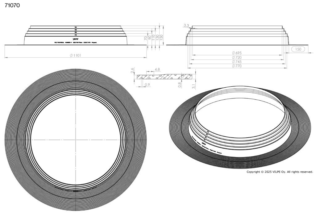 ФЕЛТ-РУФСИЛ (FELT -ROOFSEAL) резиновые уплотнители для герметичной проводки труб, опор рекламных щитов, флагштоков, кабелей и т.д. через битумную кровлю. Гибкий уплотнитель из ЭПДМ (EPDM) - резины допускает тепловые и механические колебания, герметизируя отверстие в кровле.