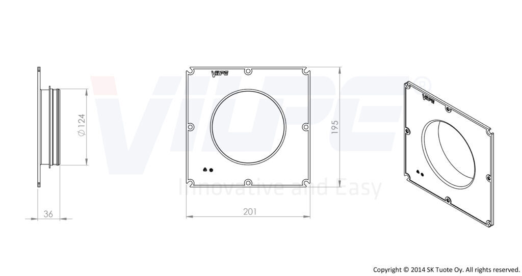 Размеры: 201 х 195 мм, диаметр отверстия 124/159/199 мм.