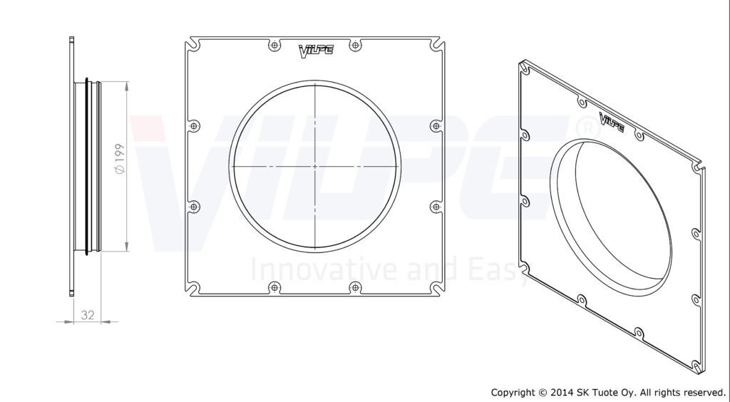 Комплект: фланец вентиляционной решетки Ø 200/250/315 мм и монтажная инструкция.